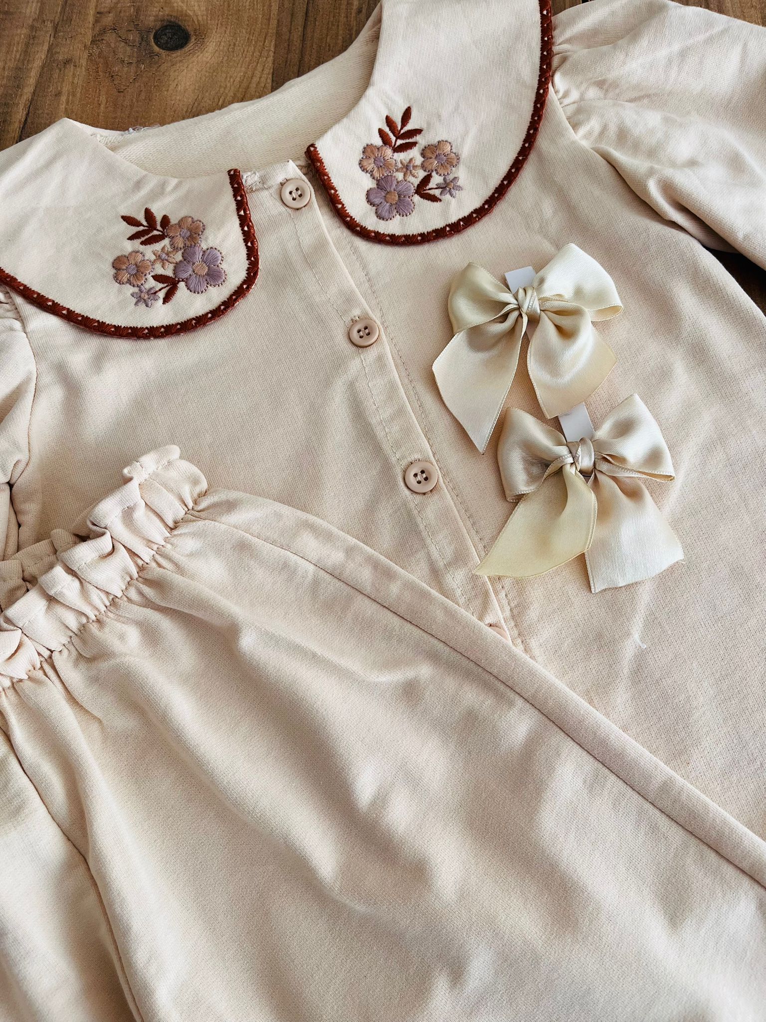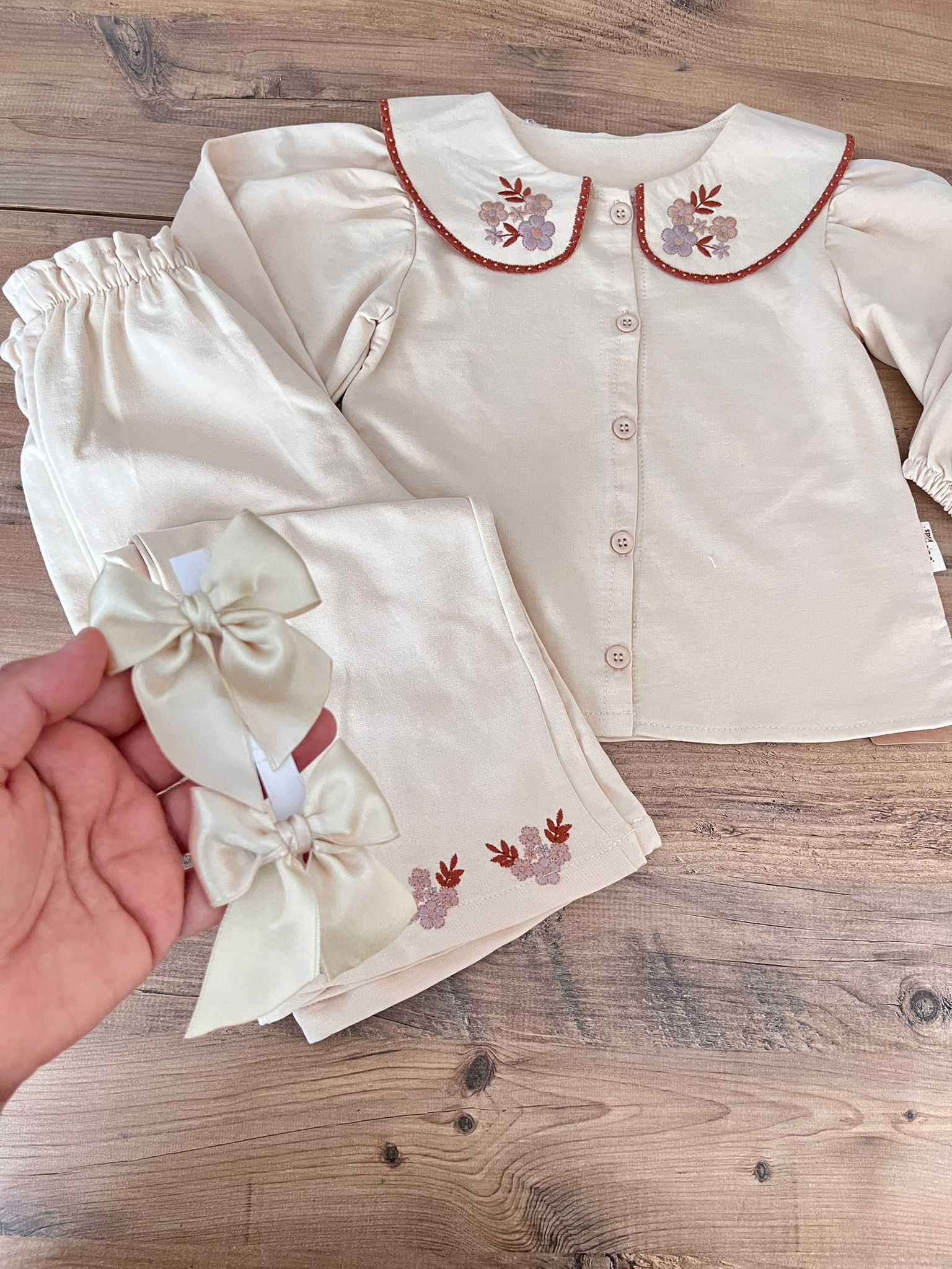 ekru renk nakışlı ikili takım