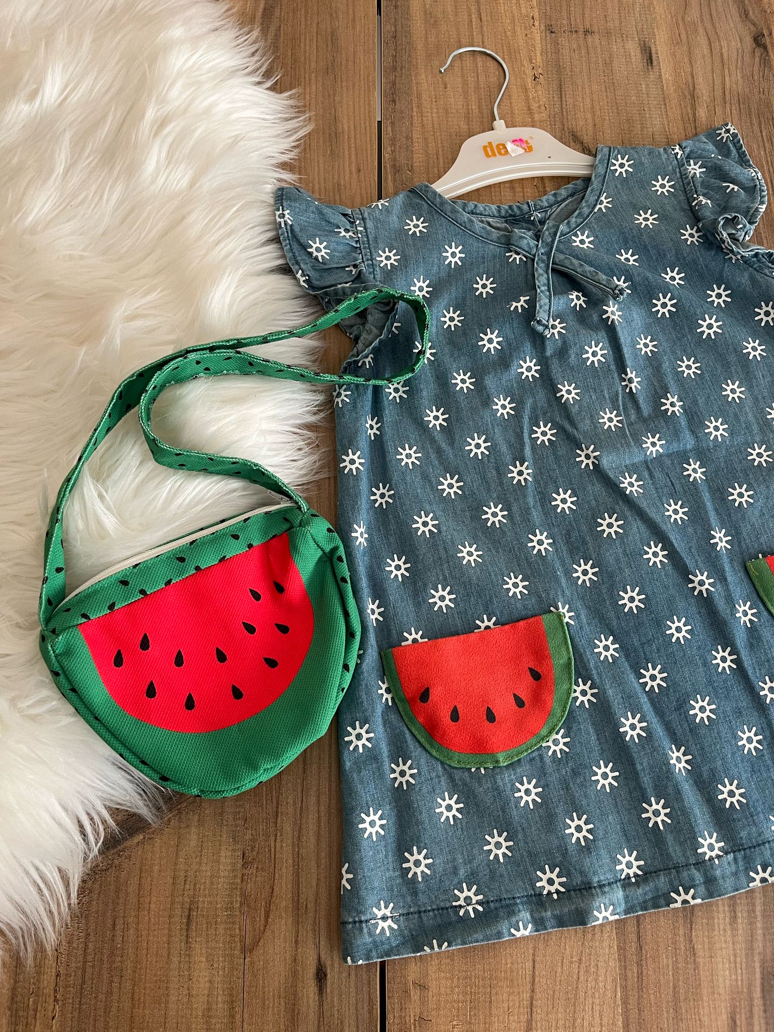 KARPUZ DETALI VE ÇANTALI KIZ ELBİSE
