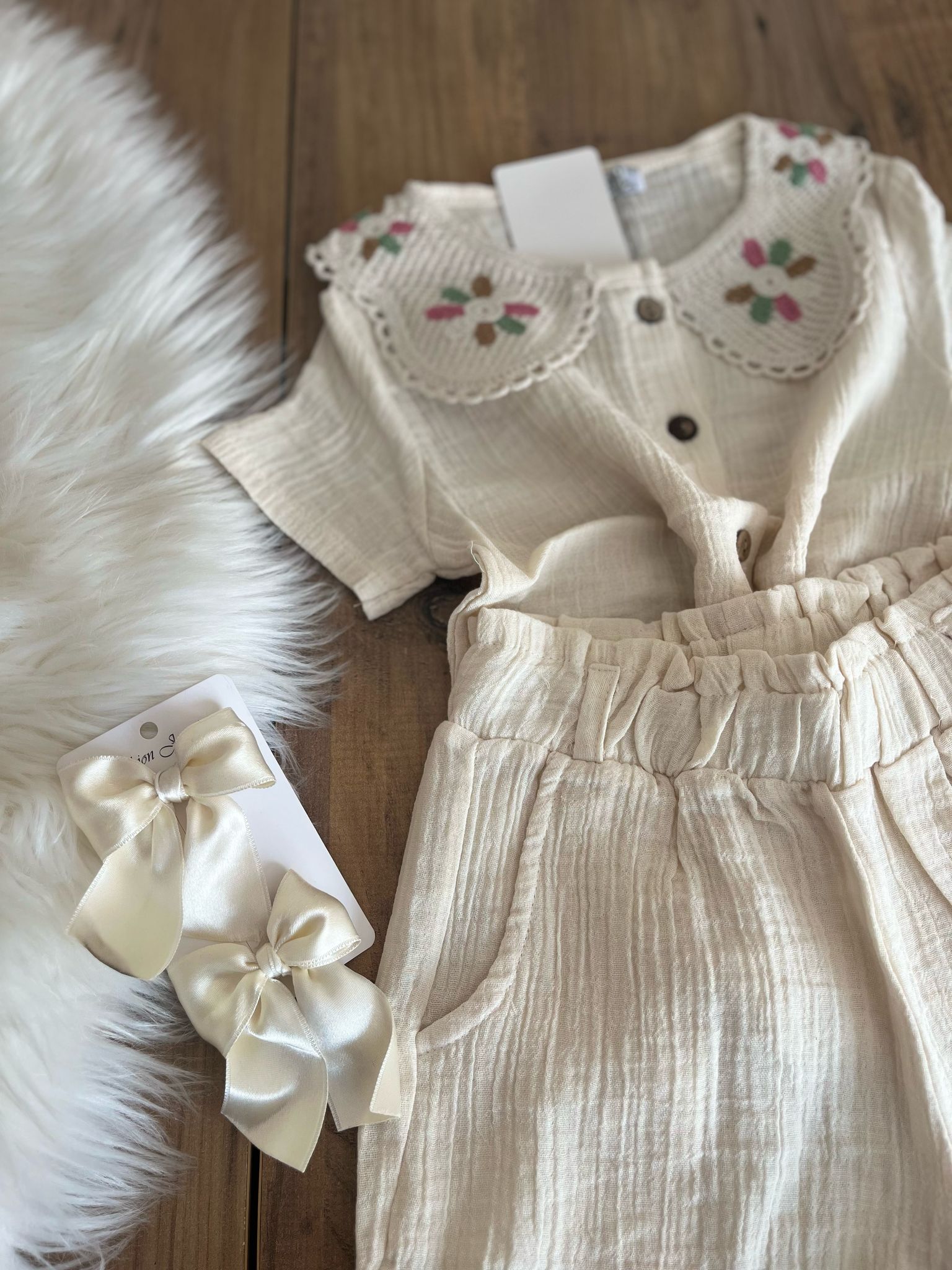 krem renk yazlık müslin ikili takım